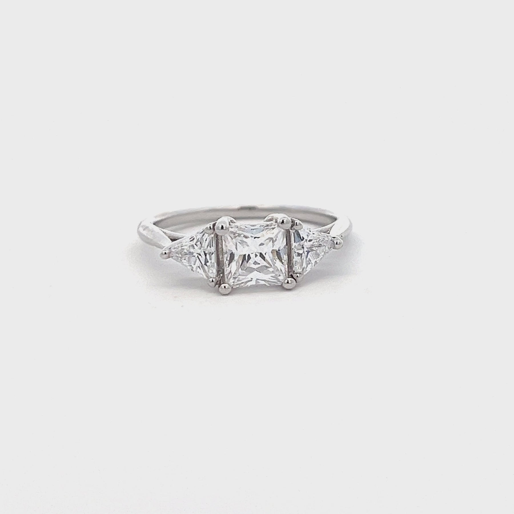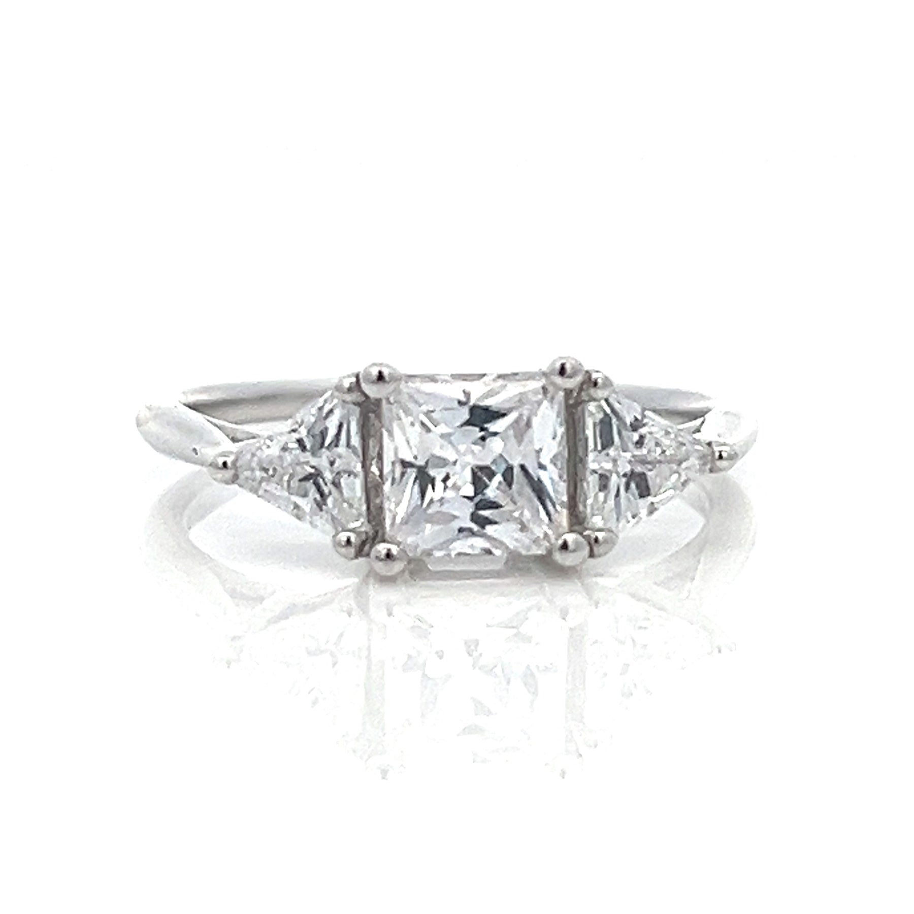 1 ctw princess-cut square diamond center and 1/2 ctw trillion cut diamonds